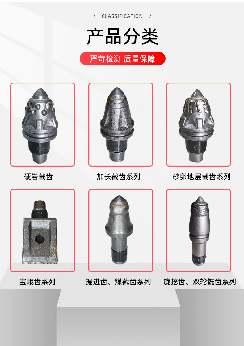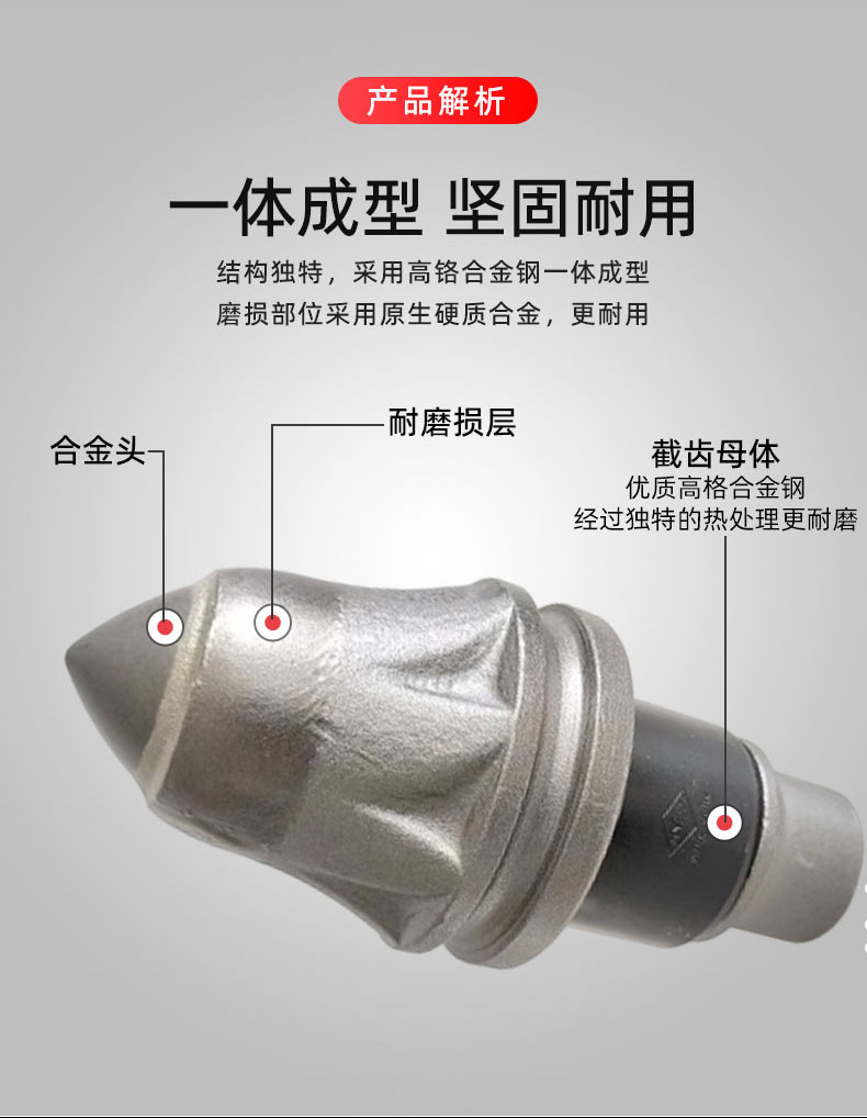 產(chǎn)品簡介:截齒特點:1、硬質(zhì)合金刀頭采用低鈷材料,硬質(zhì)合金刀頭更大,耐磨性更強。2、先進的加工工藝,保證硬質(zhì)合金刀尖的高品質(zhì)。3、硬質(zhì)合金刀頭在鉆孔過程中具有更高的受力強度,減少斷齒或開裂的風險。4、鉆齒型譜豐富,針對不同地層,多種型號類型可供選擇。